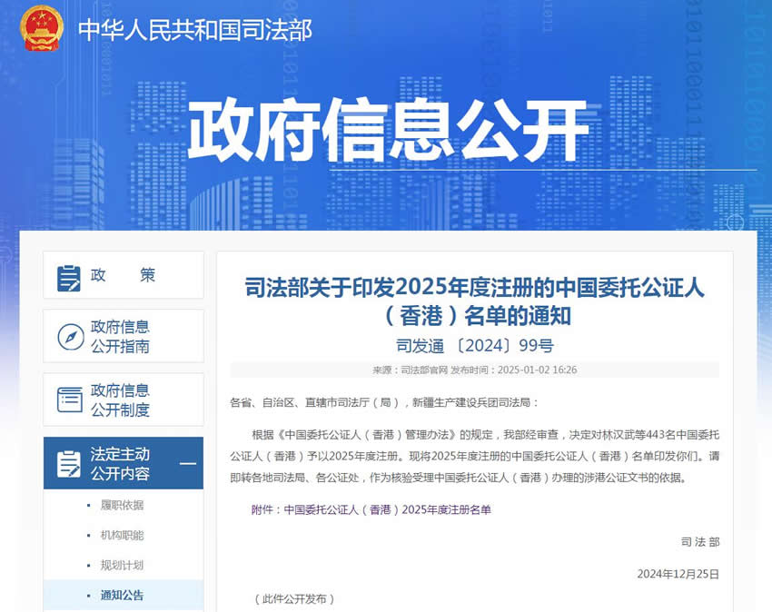 司法部關(guān)于印發(fā)2025年度注冊(cè)的中國(guó)委托公證人(香港)名單的通知